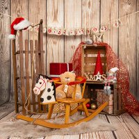 Schlitten mit Fell und Weihnachts-Deko